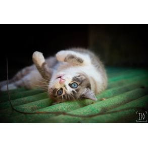 Ma petite Naya, c’est la parfaite alchimie entre un regard empli de tendresse et une patte de fer. Ces yeux magnifiques, que je ne me lasse pas de photographier, m’étonnent à chaque fois. Tantôt fragile quand elle me demande de l’attention, tantôt furieuse quand elle me voit jouer avec son frère Narco. Je partage avec elle ma passion pour la photographie et elle me le rend plutôt bien. Le bleu sidéral de son regard et le gris anthracite de son pelage sont de véritable merveille de contraste à travailler.